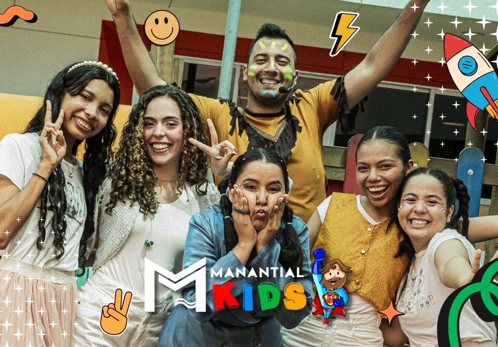 En Manantial Kids, nuestra misión es que cada niño experimente el amor de Jesús en un entorno divertido, creativo y lleno de fe. Cada domingo desde los más pequeños hasta los niños de 11 años, disfrutan de un espacio pensado solo para ellos, donde: Alaban con alegría, disfrutan de clases dinámicas, viven historias increíbles a través del teatro, aprenden de la mano de maestros apasionados.